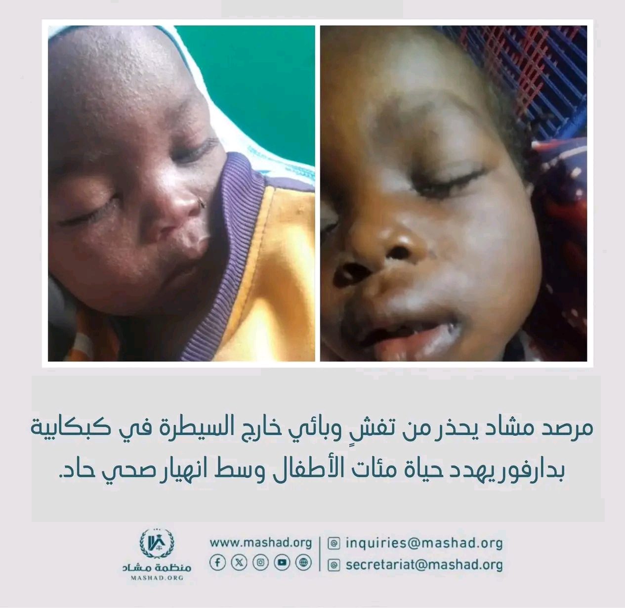 دقّ مرصد مشاد ناقوس الخطر محذرًا من تفاقم كارثة صحية غير مسبوقة في إقليم دارفور، مع انتشار متسارع لوبائي الحصبة والسعال الديكي وسط الأطفال، خاصة في محلية كبكابية، في ظل انهيار شبه كامل للخدمات الصحية.